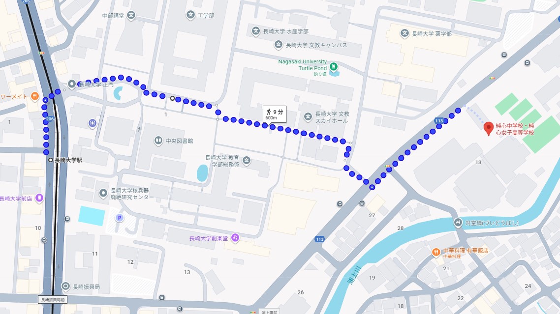 (1)電車でお越しの場合:JR長崎駅から路面電車で15分、長崎大学駅下車後徒歩10分
